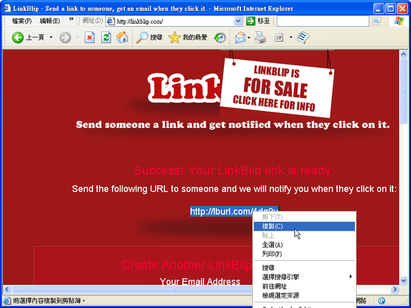 接著你會獲得一段特殊的短網址,把它複製起來,放到信件、部落格或任何地方,當其他人點擊這個網址後,你就會在剛剛填入的信箱裡收到通知信囉!如此一來便可以方便的進行追蹤。