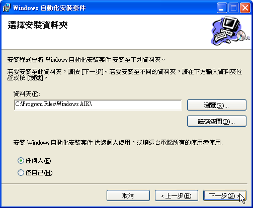 接著就會載入安裝程式,一直按〔下一步〕即可完成安裝。之後在【開始】功能表便可看到WAIK的相關捷徑。