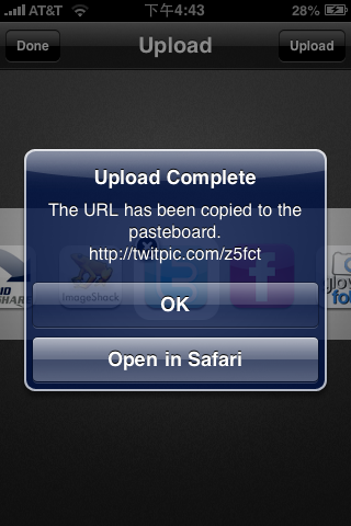 上傳成功後可以點選「Open in Safari」來觀看上傳的結果。