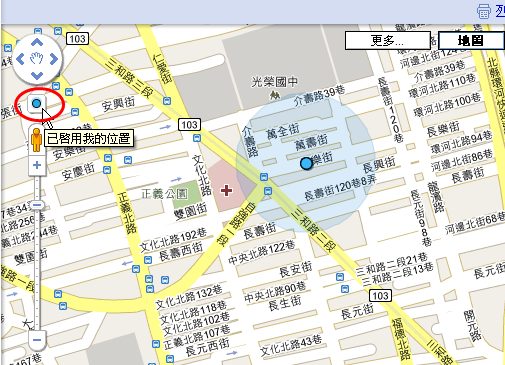 雖然目前Google Map有一個「我的位置」功能,但那是藉由你上網時所連接的ADSL機房最近位置、手機基地台位置(用手機上網的話)來猜測,或是以周圍WiFi基地台的訊號強弱來做演算推斷(用無線上網時),定位出來的都是一個大致範圍。 |
