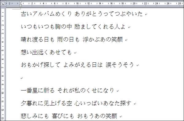 3. 把日文歌詞貼到 Word 裡。請注意,由於接下來的操作會把日文原文取代掉,如果你希望最後能有日文及羅馬拼音對照,請先自己複製一份原文在下方備用。