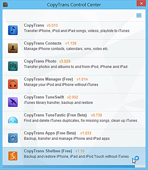1. 其實在安裝下載回來的EXE檔時,是安裝上「CopyTrans Control Center」這個控制中心,還要點擊其中的【CopyTrans Shelbee (Free)】才能安裝主程式喔。