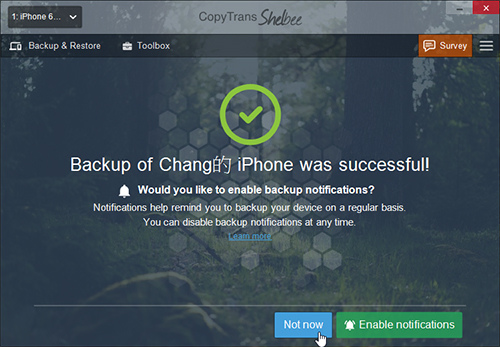 6. 如果有出現詢問你是否要開啟備份通知,可以按下〔Enable notifications〕開啟或是按一下〔Not now〕取消。