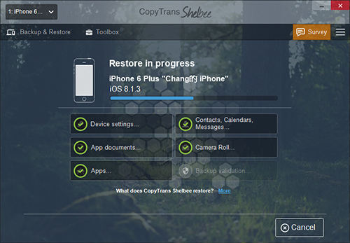 3. 與備份時的步驟相同,等所有項目都變綠色勾勾時,就還原完成囉!