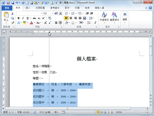 4. 將所有要對齊的部分都設定好定位點後,會發現文件內容都對的整整齊齊的。