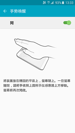 3. 在開啟「手勢喚醒」之後,當手機進入黑屏待機時,我們可以將手掌遮蓋住手機前鏡頭附近晃動一下。