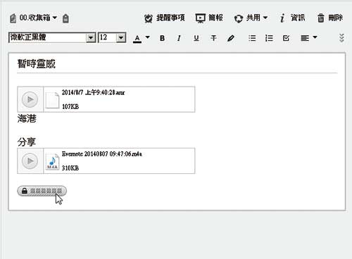 (二)只能加密單則筆記內的某一段或某幾段文字內容,無法加密檔案或整則筆記。