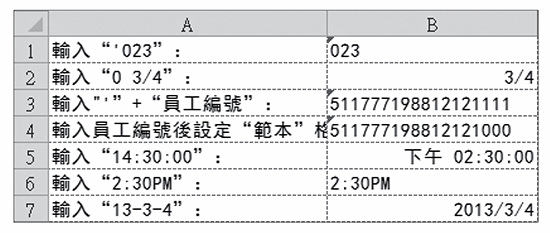 還有一個方法就是在輸入數字前,先將要輸入數字的儲存格或儲存格區域設定為「文字」格式,此後直接輸入數字即可。