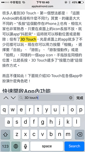 在電腦上,很多人都會用「Ctrl+F」或「Command+F」來搜尋網頁內文字,那在手機上呢?Safari一樣有這功能!