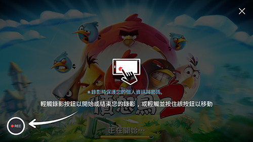 4. 遊戲啟動後,按一下左下角的「REC」鈕即可開始錄製遊戲影像,錄製完成後,再按一下錄影鈕來儲存影片。(這時候前鏡頭也會同步錄製我們的表情,相當有趣!)