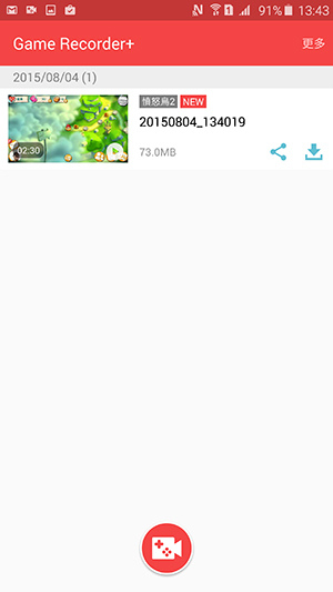 6. 接下來我們就可以在「Game Recorder+」的影片清單中,找到剛才錄製的影片,可以選擇分享影片或是將影片保存到手機中。