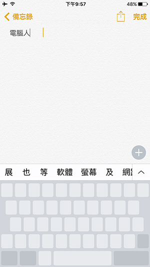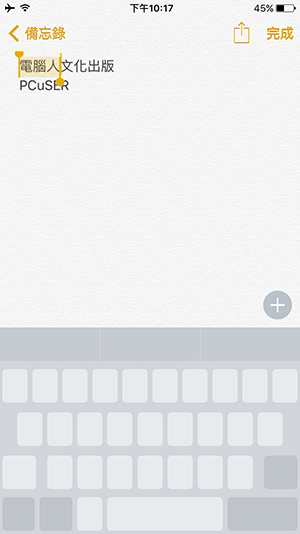 1. 在可以輸入文字的app中,當你在輸入文字時,按壓鍵盤即可變身觸控板,你可以用手指輕鬆移動閃爍游標。