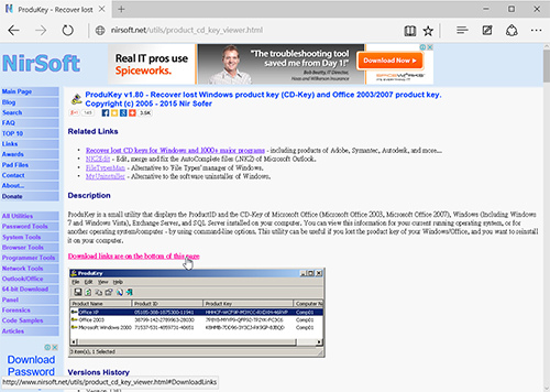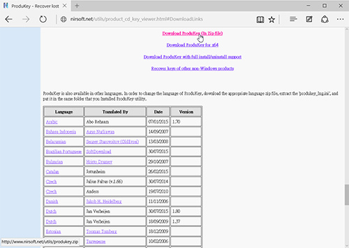 2. 來到 ProduKey 下載網頁後,按一下最上方的「Download ProduKey(In Zip file)」下載連結。