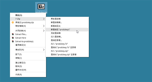 3. 點擊下載連結後,Microsoft Edge 瀏覽器就會將檔案儲存到預設的「下載」資料夾內,下載後的檔案名稱為「produkey.zip」,利用作業系統內建的解壓縮功能或是 WinZip、WinRAR、7-Zip 等專門的壓縮軟體進行解壓縮。