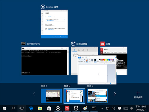 1. 如果想要將某些工作視窗搬移至其他虛擬桌面,則將滑鼠游標移動到該工作視窗縮圖上,然後按住滑鼠左鍵拖拉至目的地的虛擬桌面內。