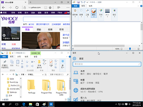 在 Windows 8/8.1 中,我們只能將桌面分割為左右兩塊區域,而在 Windows 10 中,則可以最多將桌面分割成「田」字形,一次可以同時使用 4 個視窗,工作及娛樂更有效率!