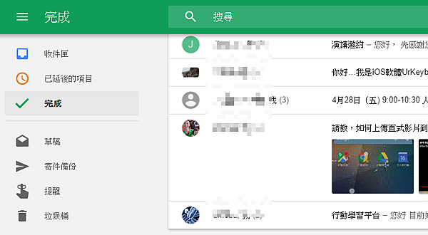 3.最後第三個Inbox分類是「完成」,也就是處理完的郵件不要放收件匣,而是統一放入完成,和Gmail的封存是同樣的概念。