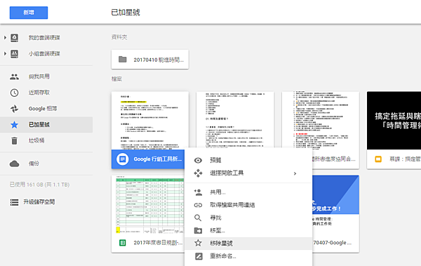 1.在 Google Drive 中,這件事情就是幫檔案打上「星號」,打上星號的檔案、資料夾,就會單獨出現在「星號標記」這個分類中。而從時間管理上來看,這就是「優先應該執行的任務」。