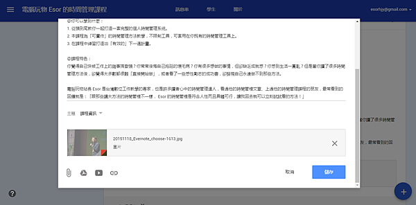 3.建立[公告],可以用文字描述課程的大綱,或是每一個單元的教學重點,也可以插入 YouTube 教學影片,或是插入更詳細的教學檔案內容。