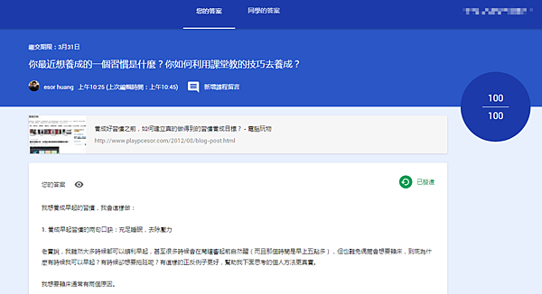 5.或者也可以把「Google Classroom(Google雲端教室)」當作線上調查、線上詢問意見的管道,利用[問答]的功能,可以設計簡答題或單選題,讓學生線上直接回答。