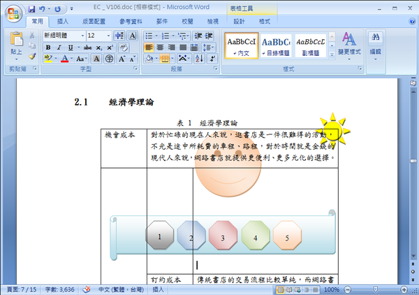 2.幸運的話,可以在點選「物件」的情況下,將該「物件」設定為【格式】→【文繞圖】→【文字在後】的配置方式,完全避免「物件」藏在文字後面的困擾。